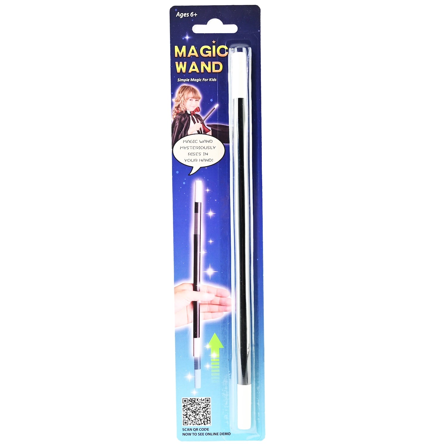 Tryllestaven er 33 cm lang og lett å holde for små hender. Den passer til utkledning, magiske triks, temafester, teaterlek og hverdagsmagi.