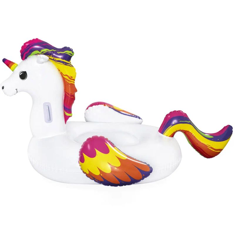 En kjempekul oppblåsbar enhjørning som garantert blir en favoritt i bassenget! Denne fargerike badeleken passer perfekt til både lek og avslapning på varme sommerdager. Den store størrelsen gjør den stabil på vannet og morsom å bruke både alene og sammen med venner.