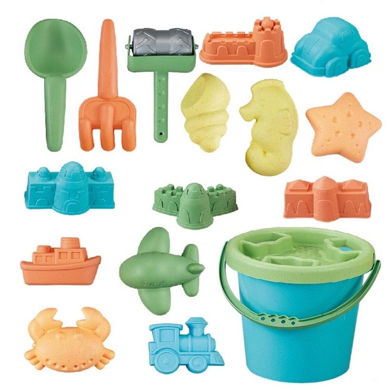 Nøkkelord: bøttesett barn, sandkasse leker, strandleker barn, hveteplast leker, miljøvennlige leker, bærekraftige leker, uteleker barn, sandsandleketøy