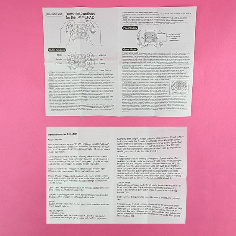 Gjør læring og moro enda mer engasjerende med denne interaktive Gamepad-leketøyet som tilbyr 5 forskjellige spillmoduser! Perfekt for barn som elsker farger, lys og en utfordrende spillopplevelse. Gamepaden er designet med intuitive knapper som endrer farger og lys, og hver modus tilbyr unike utfordringer som forbedrer hukommelse, refleks og hånd-øye-koordinasjon.