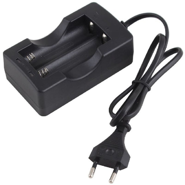 CE godkjente batteriladere for 18650 batterier. Denne er med EU stick for å sikker og effektiv lading i vegg.