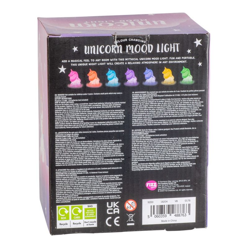 Moodlight Unicorn er en vakker liten enhjørning lampe som også kalles moodlight. Den lyser ikke akkurat opp hele rommet, men gjør det koselig rundt seg ved å skifte mellom alle regnbuens farger og utstråle ro. Passer utmerket som vanlig pyntegjenstand, nattlampe eller til temafesten.