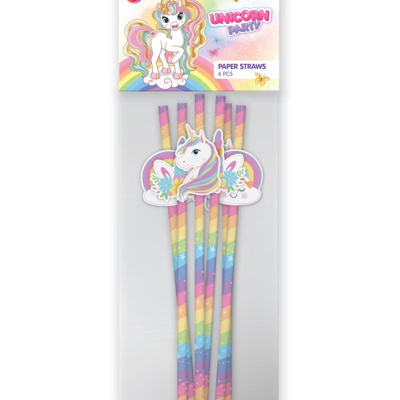 Enhjørning papirsugerør 6pk 19cm | Magisk pynt til bursdag er utsolgt og vil bli sendt så snart den er tilbake på lager.