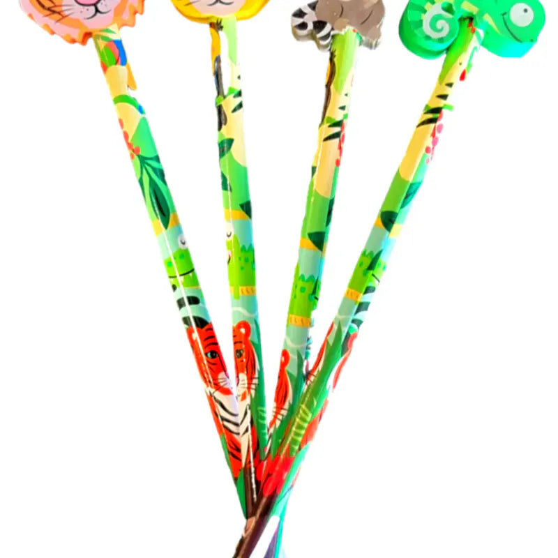 Nøkkelord: jungel blyant, blyant med viskelær, skrivesaker barn, kalendergaver, skriveutstyr med dyr, blyant gave, smågaver til barn, fargerike blyanter, viskelær dyr, artig skriveutstyr, jungeltema