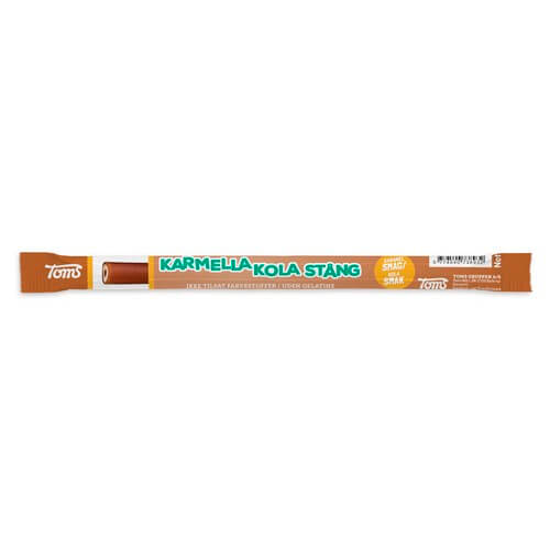 Karamell Kola Sukker/socker, glukose-fruktosesirup/-sirap, HVEDEMEL/HVETEMEL/VETEMJÖL (GLUTEN), modificeret majs- og kartoffel-/potetstivelse/modifierad majs- och potatisstärkelse, helt hærdet/herdnet/härdat vegetabilsk fedt/fett (palmekerne/-kjerne/palmkärna, kokos), fugtighedsbevarende middel/medel (glycerol/glyserol), emulgator/emulgeringsmedel (mono- og diglycerider af fedtsyrer), brændt sukker/karamell/sockerkulör, fortykningsmiddel/förtjockningmedel (arabisk gummi), sirup/sirap, salt, aromaer/aromämnen, rålakrids.