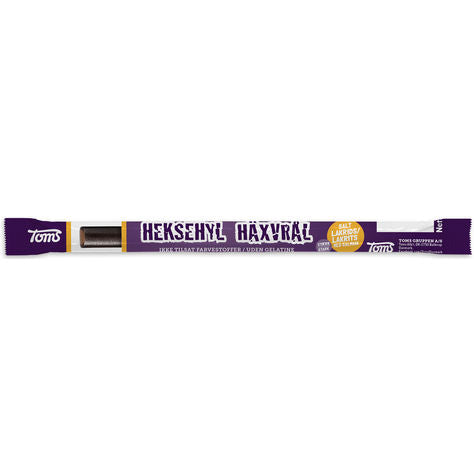 Heksehyl Ingredienser: sukker/socker, glukose-fruktosesirup/-sirap, engelsk sirup/sirap, HVEDEMEL/HVETEMEL/VETEMJÖL, modificeret majs- og kartoffel-/potetstivelse/modifierad majs- och potatisstärkelse, rålakrids 4%, ammoniumklorid 4%, helt hærdet/herdnet/härdat vegetabilsk fedt/fett (palmekerne/-kjerne/palmkärna, kokos), fortykningsmiddel/förtjockningmedel (arabisk gummi), emulgator/emulgeringsmedel (mono- og diglycerider af fedtsyrer), fugtighedsbevarende middel/medel (glycerol/glyserol), salt, aroma/aromämne.