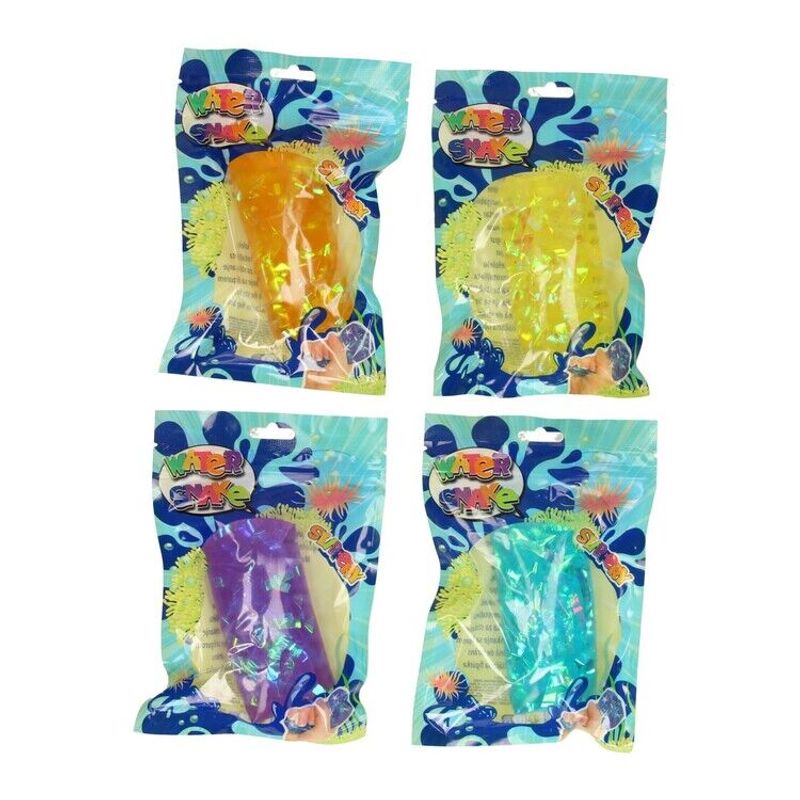 Klassikker gjennom generasjoner som fortsatt skaper glede og undring hos barn i dag. Vannpølsen er som en vannfylt ballongrør som du kan klemme på og som "skyter" ukontrollert ut av hånden når du klemmer på den. Denne vannpølsen har glitrende strimler inni og kommer i 4 farger, men vi har også flere i andre motiver.