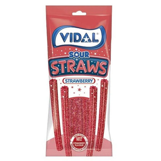 Er du klar for en sur-søt smakseksplosjon? Disse sure sugerørene fra Vidal er proppfulle av jordbærsmak og gir deg både intens smak og leken moro. Perfekte som godteri, men også morsomme å bruke som sugerør i brus eller annen drikke – en favoritt blant både barn og voksne!