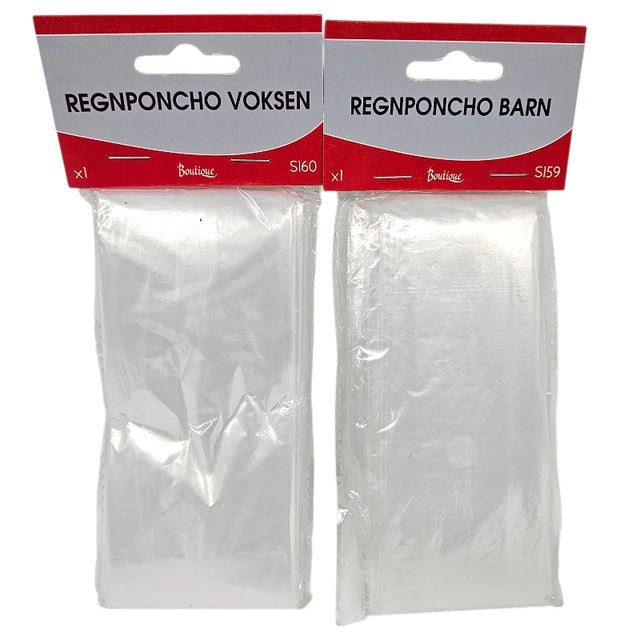 Regnponcho Gjennomsiktig 10pk | Barn/Voksen - Barn is backordered and will ship as soon as it is back in stock.