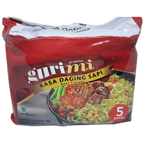Gurimi Nudler med biffsmak er et perfekt valg når du trenger et raskt og smakfullt måltid. Hver pakke inneholder fem individuelle porsjoner med nudler og krydderblanding som gir en fyldig og krydret smak av biff.